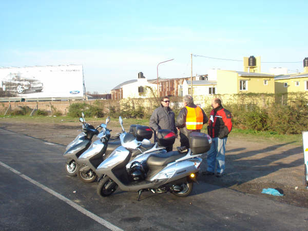 9 AM  Al llegar al peaje DOCK SUD de la Autopista Bs. As – La Plata me encontré con dos grandes compañeros y amigos JUANJO, BART y LUCHO con sus ELITE espectantes e inquitos por salir.