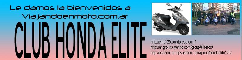 Querida gente de viajandoenmoto.com.ar, en nombre de todos los eliteros y del CLUB HONDA ELITE ARGENTINA, les doy las gracias por habernos dado la bienvenida en su pagina, de la manera mas linda y amistosa posible.