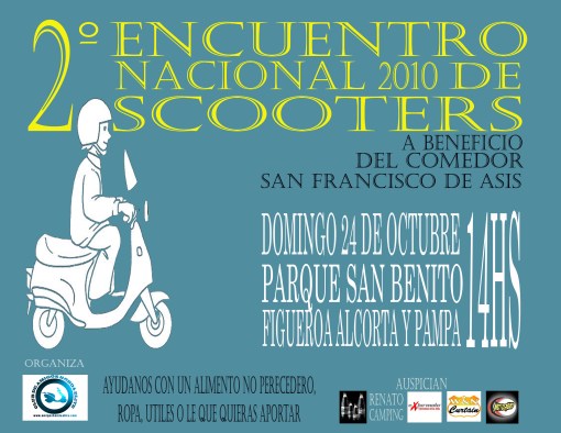 El CLUB DE AMIGOS HONDA ELITE, organizó el 2° ENCUENTRO NACIONAL DE SCOOTER a total beneficio del COMEDOR SAN FRANSCISCO DE ASIS. La consigna fue: traer un alimento no perecedero. Y la gente respondio excelentemente.