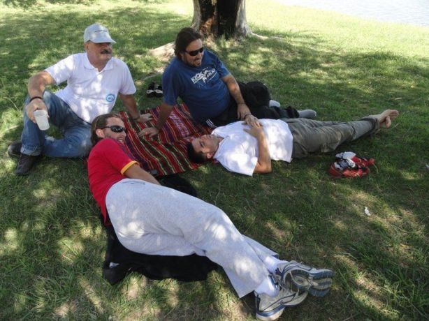 Luego de recorrer los 120 Kilómetros necesarios para arribar a Ranchos, se hicieron las compras para el riquísimo asado que nuestro amigo Hugo nos preparó. Nos instalamos en el Camping Municipal junto a la Laguna, donde la tranquilidad y la paz (sin hacer referencia al nombre del Partido) reinaron durante toda la tarde.