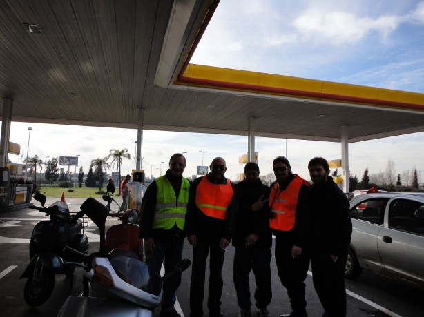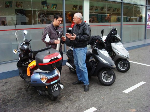 Aquí podemos observar al Presidente del Club de Amigos Kymco Grand Dink, LUIS, observando la situación con mucho estilo. También la gente del Club Twister coincidió con nosotros en el punto de encuentro, al igual que el Club Vespa Buenos Aires.