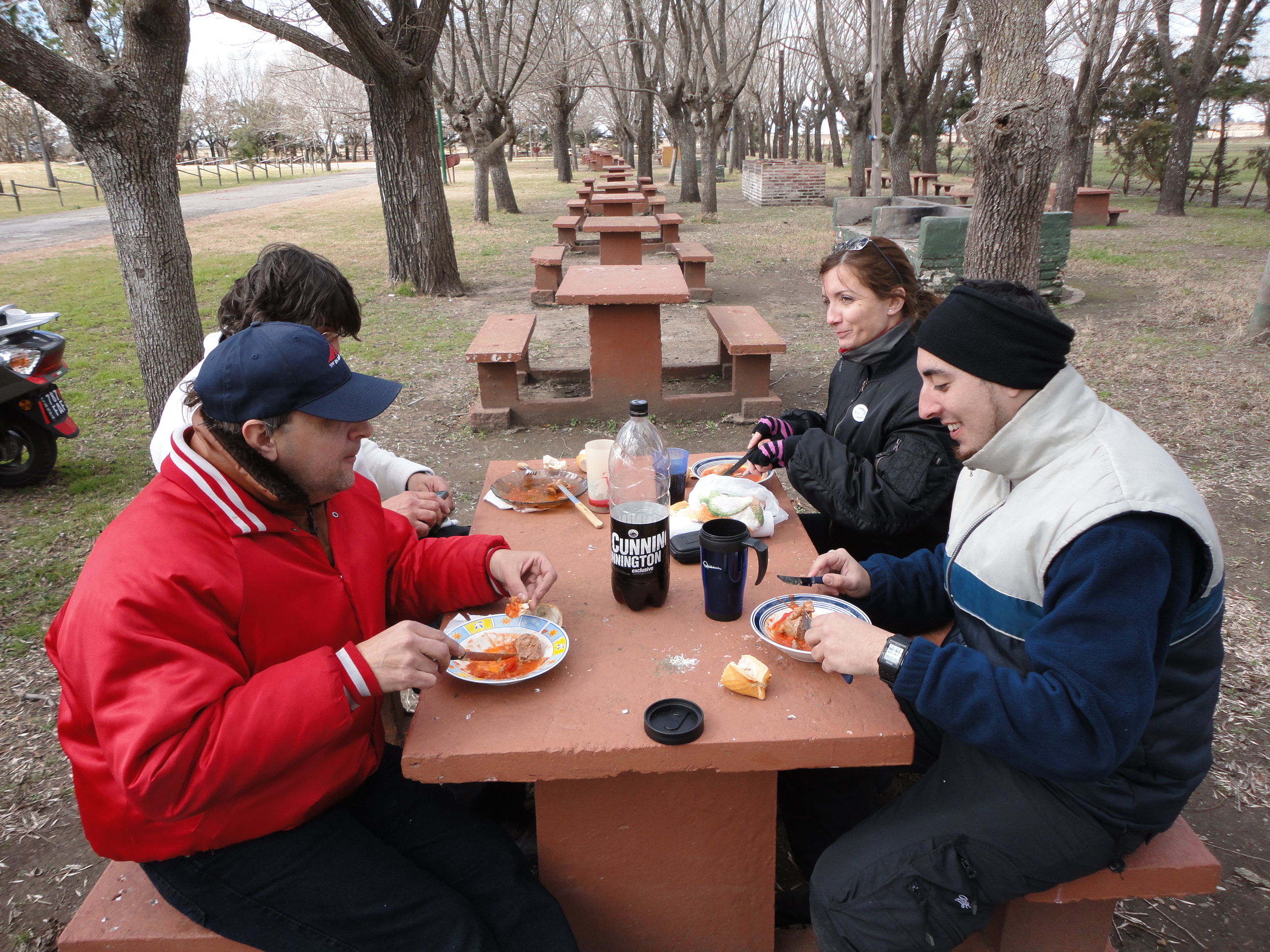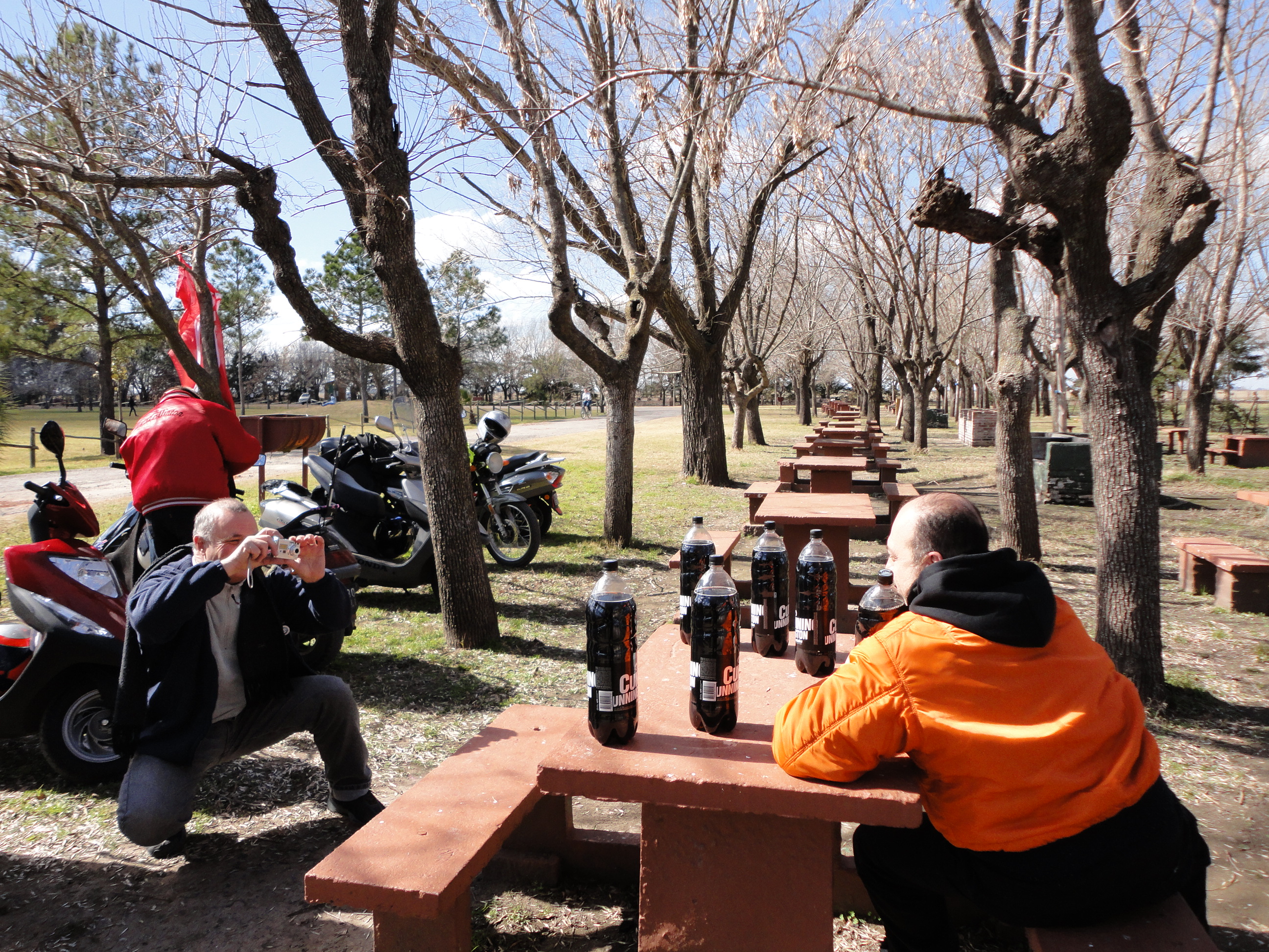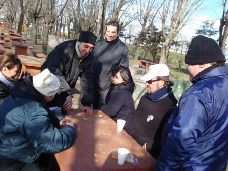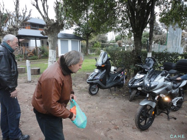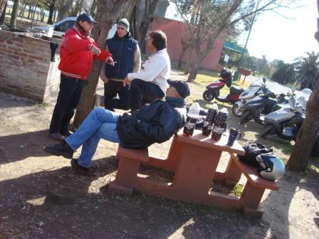 «Por la tarde, recorrimos el balneario a orillas del Río Areco, intercambiamos entre los participantes a este viaje ideas, proyectos, soluciones a la situación del mundo, no faltando chanzas a los debutantes a los viajes, en esta caso a Oscar “Electricista”, Gabriel “Heladero”, Oscar “Jianshe”, cuya integración fue excelente, tanto en la ruta, como al grupo. Fotos, juego de dados, charla continua, café caliente (Extrañamente no tomamos mate), amistad manifiesta… Nada faltó…» LAC
