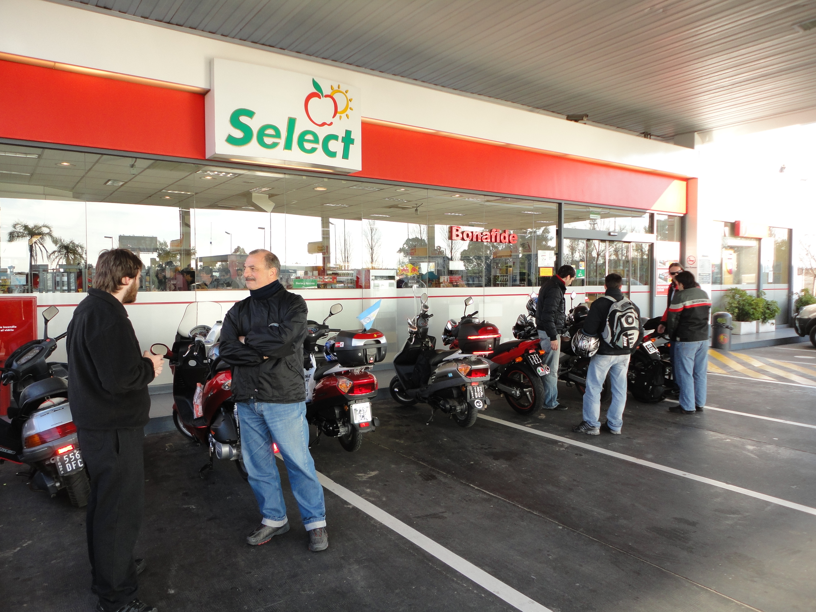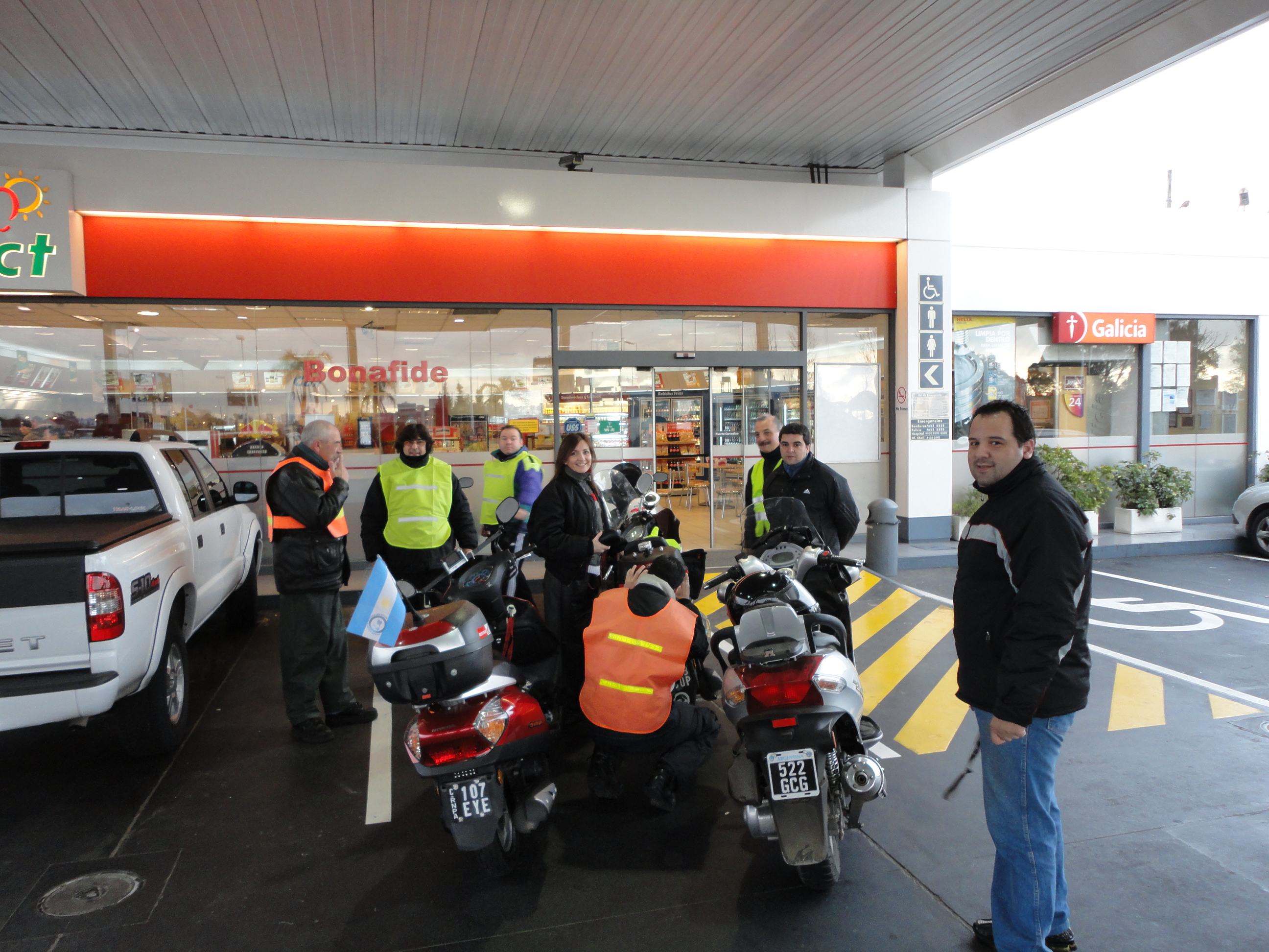 La primera parada pactada fue en la YPF de General Rodríguez donde los dos grupos se encontraron y mas miembros del CLUB DE AMIGOS HONDA ELITE ya se había sumado. Allí se repuso combustible y se continuó rumbo al destino elegido.