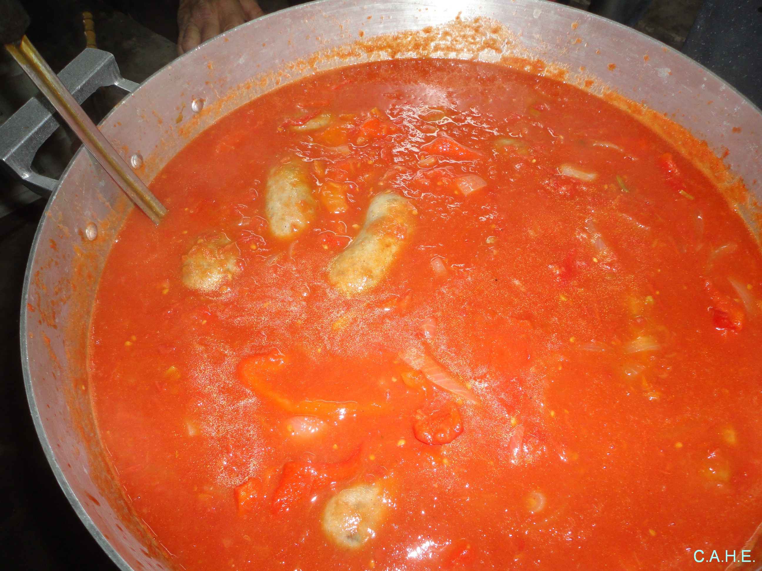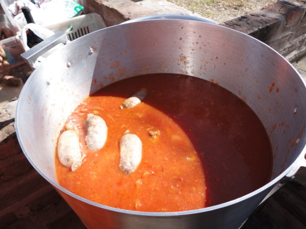 Hechos todos los honores super merecidos, el Gran Luis, puso en marcha la cocción de los CHORIZOS A LA POMAROLA.