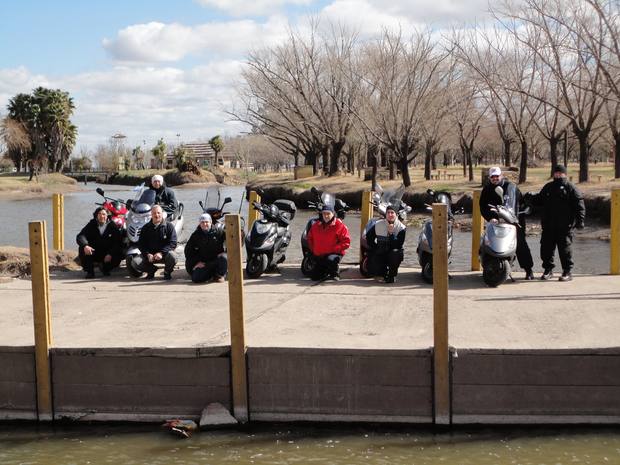 Otro grupo salió a pasear con los scooter por el parque y decidieron sacarse una foto junto al Rio Areco.