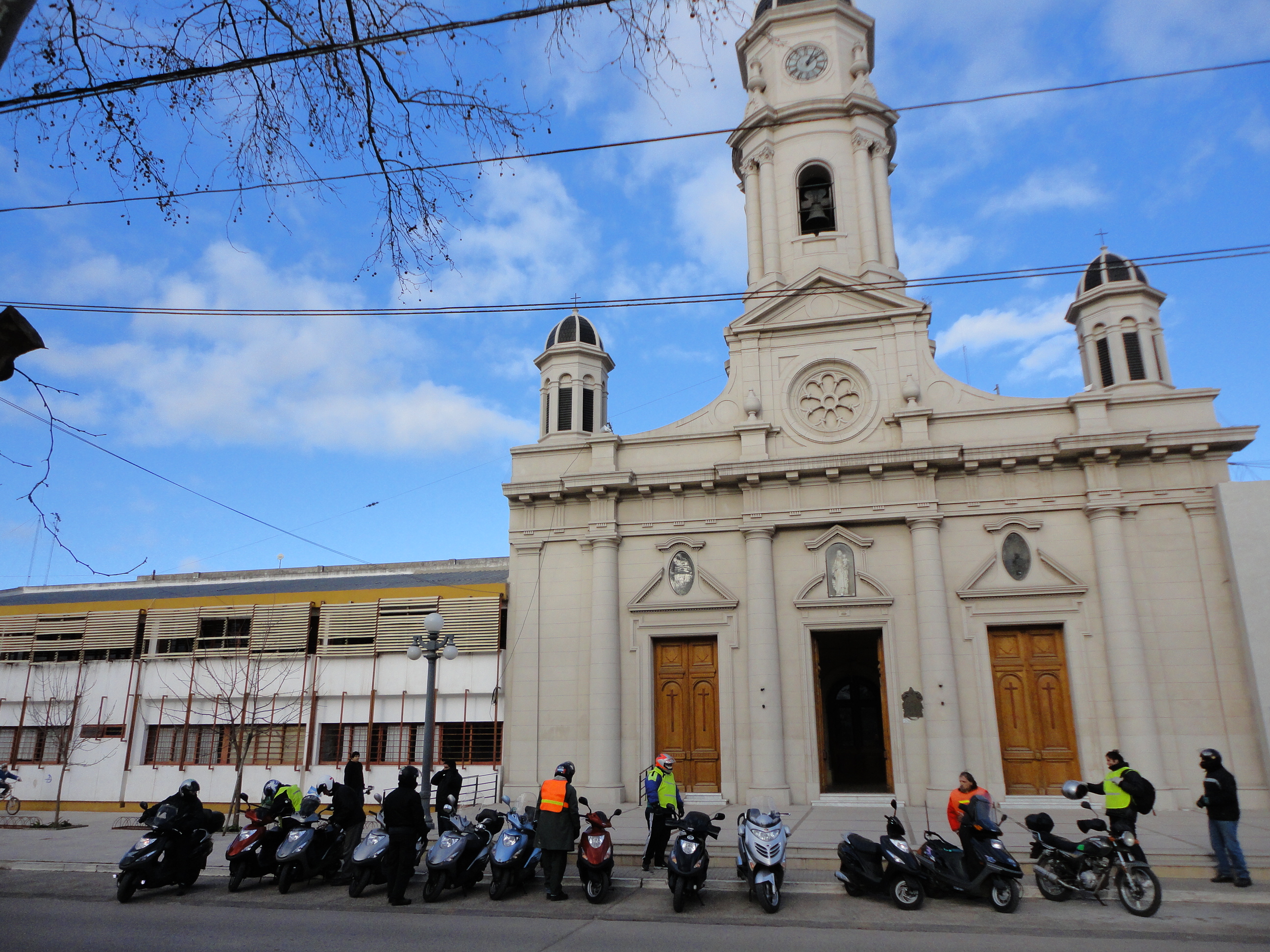 La imágen de la Plaza y la Iglesia con las motos