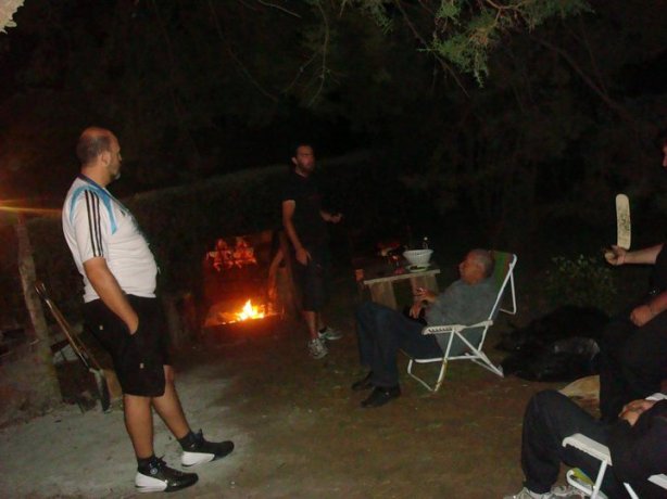 Nos instalamos en las mesas mientras LUIS y JUANJO, como siempre, se encargaban del fuego y el asado.
