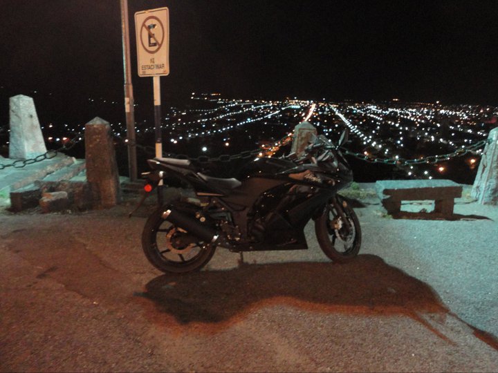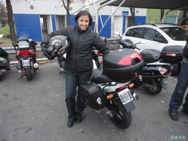 La Honda Twister con sus anclajes y valijón trasero y alforjas laterales, quedó hermosa. Felicitaciones Cecilia.